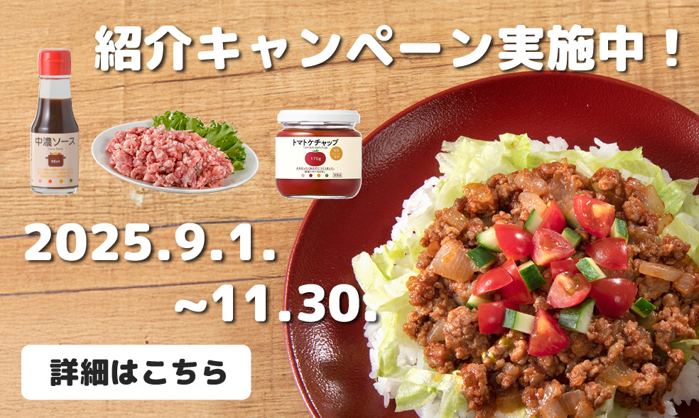 「本当に安心できる食材」のため、できるだけ国産にこだわり、添加物や遺伝子組み換え作物などをできるだけ除いた品物を開発工程から関わって生産・お届けしています。